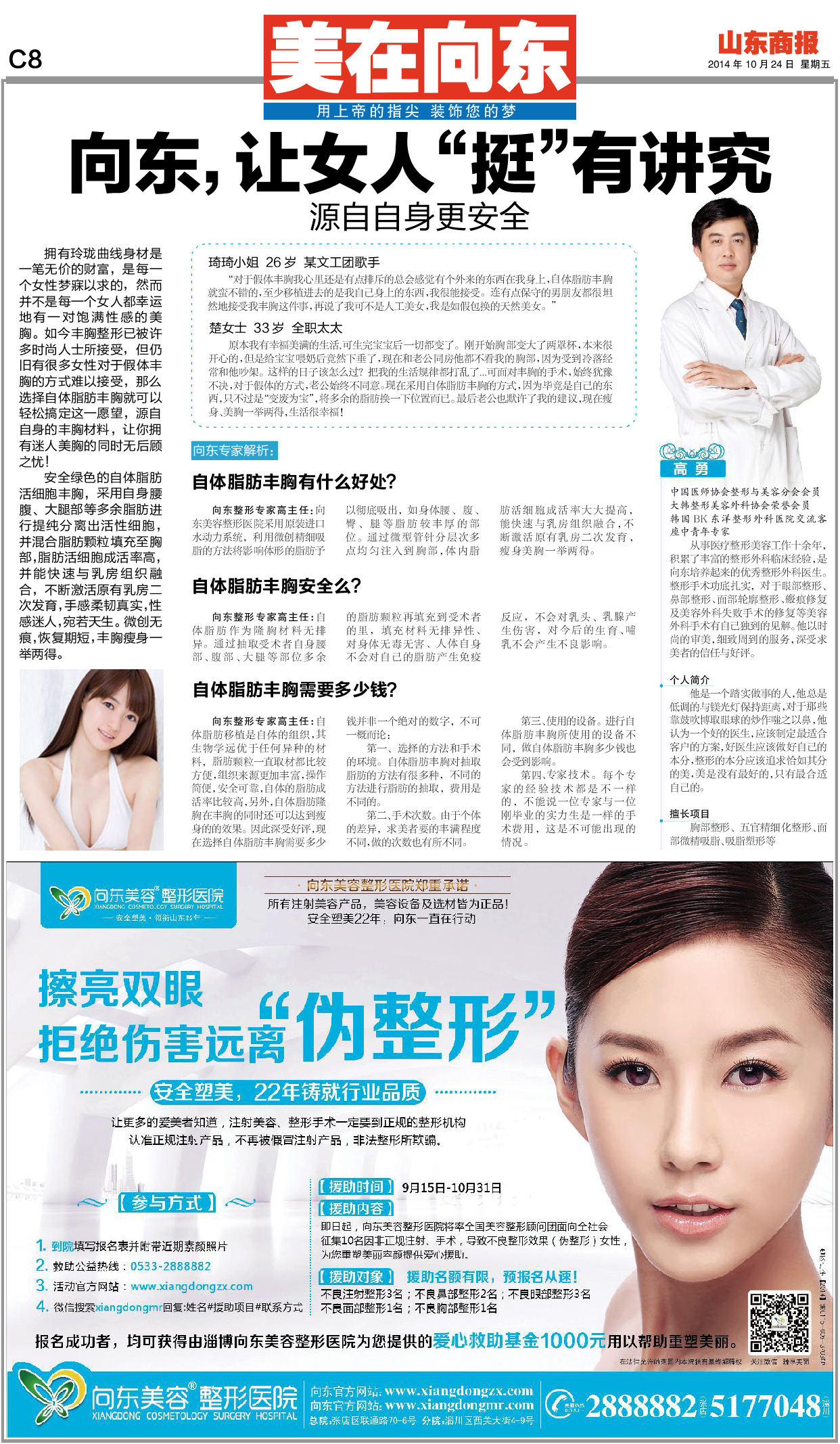 向东整形专家:向东美容整形医院采用原装进口水动力系统,利用微创精细吸脂的方法将影响体形的脂肪予以彻底吸出,如身体腰、腹、臀、腿等脂肪较丰厚的部位。通过微型管针分层次多点均匀注入到胸部,体内脂肪活细胞成活率大大提高,能快速与乳房组织融合,不断激活原有乳房二次发育,瘦身美胸一举两得。